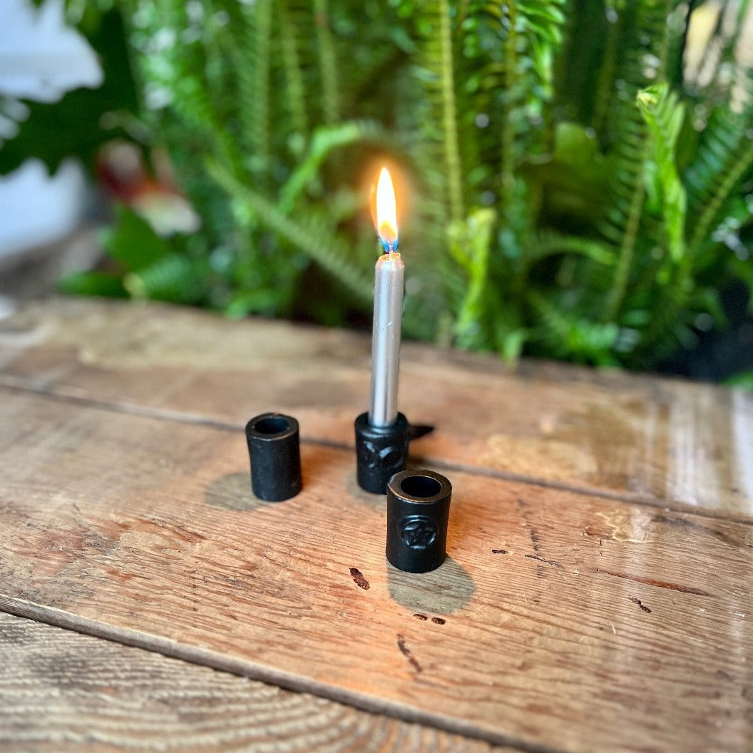 Enhance your spell practice with these durable cast iron chime candle holders. Designed to safely hold your chime candles, these chime candle holders provide stability during rituals, ensuring your candles remain upright and secure. Perfect for preventing wax spills on your altar or sacred space, these holders combine functionality with timeless elegance.